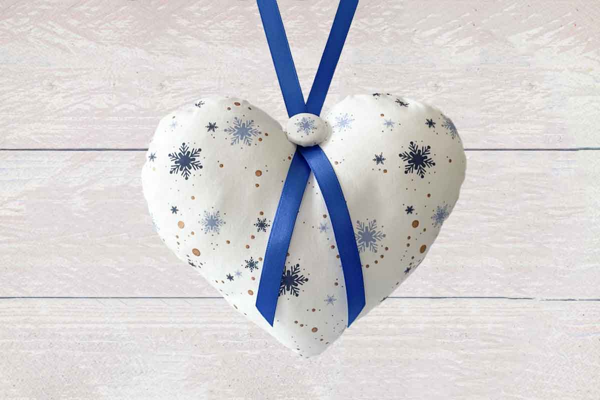 Blue Snowflakes Christmas Fabric Hanging Heart