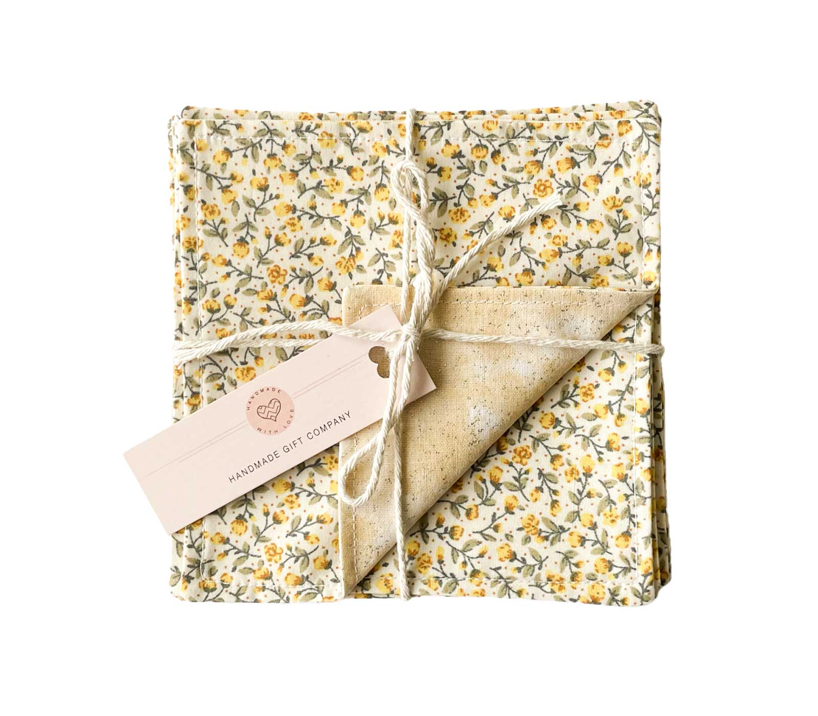 Lovely Handmade Set of 6 Coasters Floral Yellow Design.