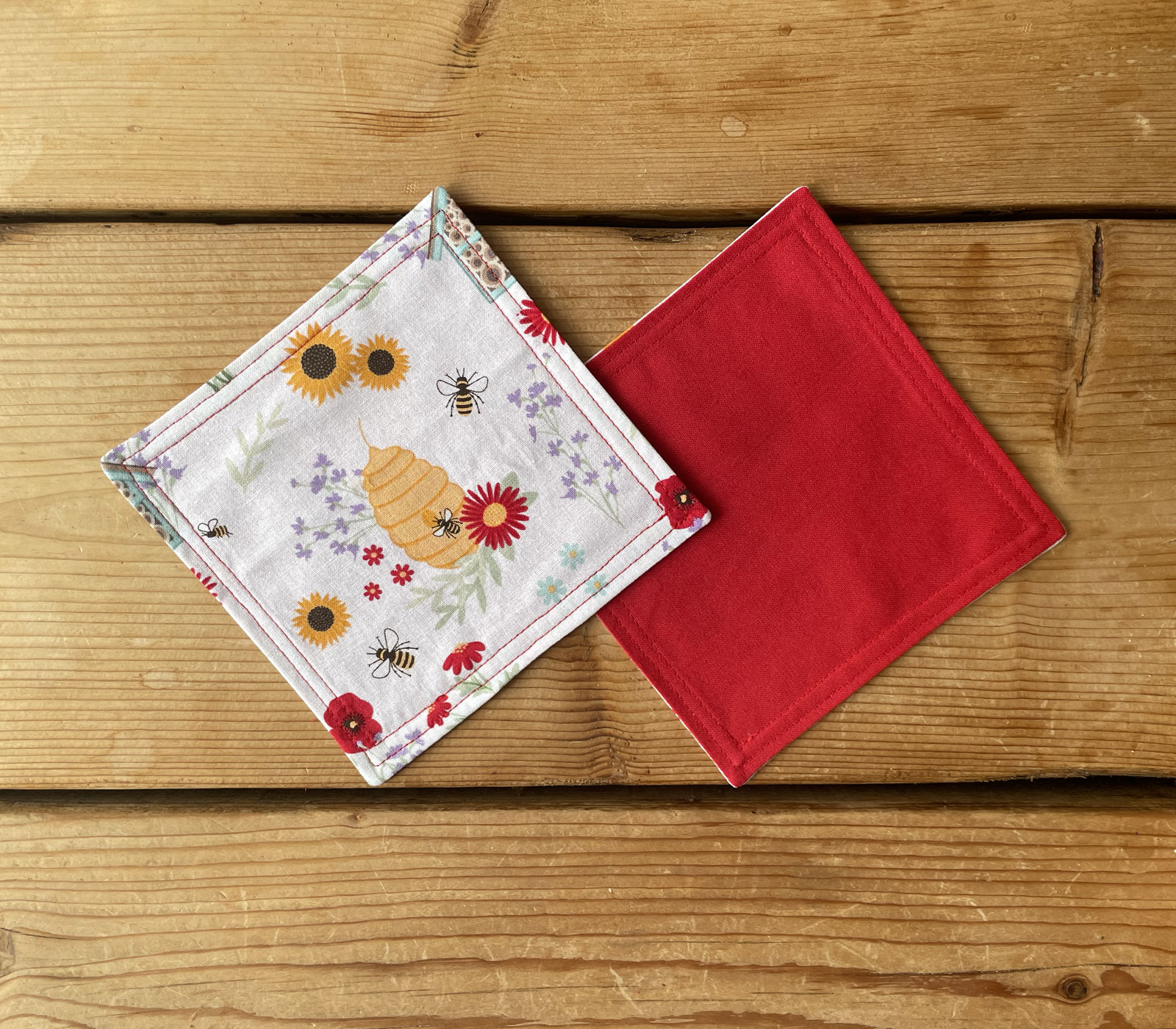 Lovely Handmade Set of 6 Coasters Pretty Beehive Design.
