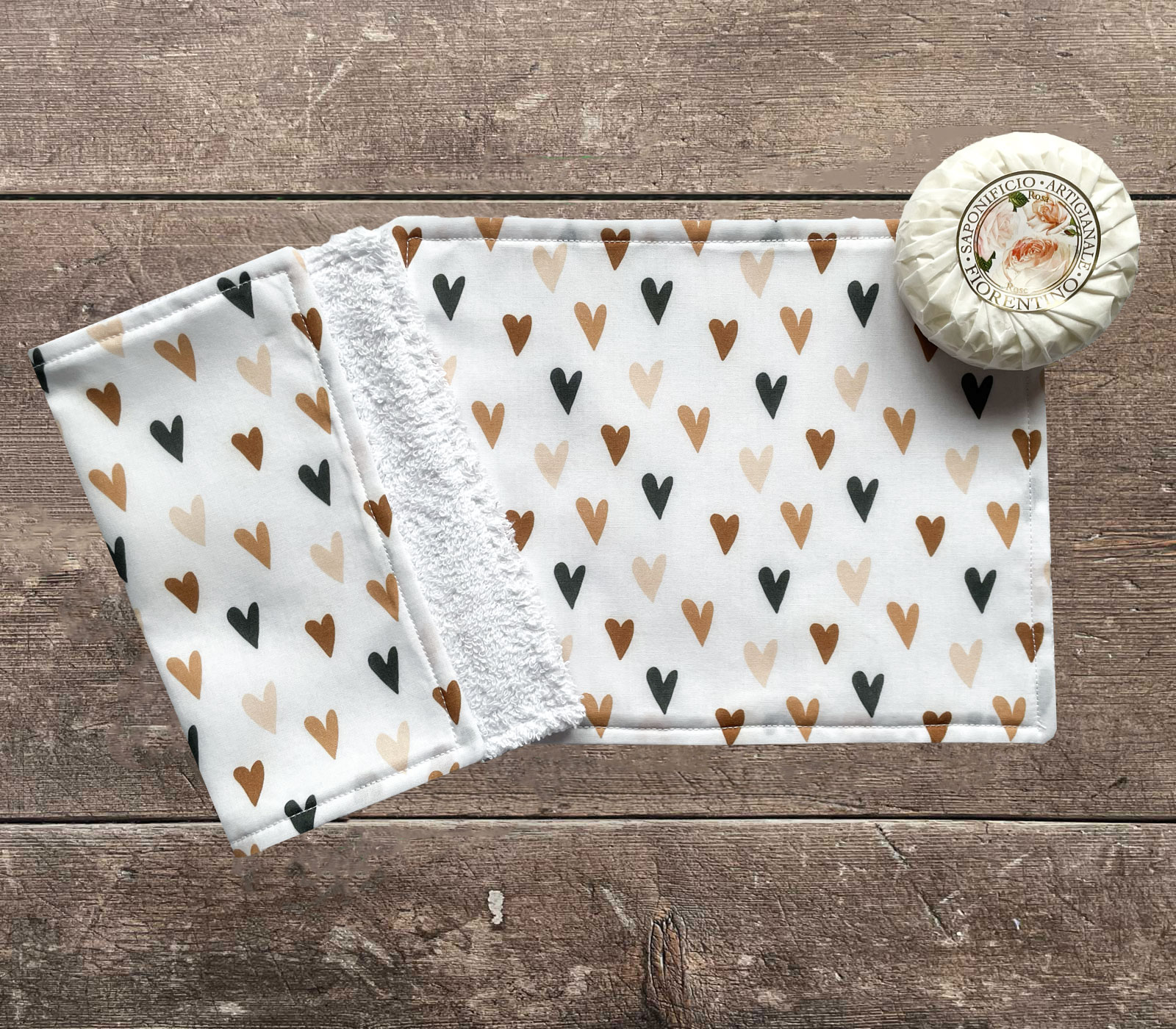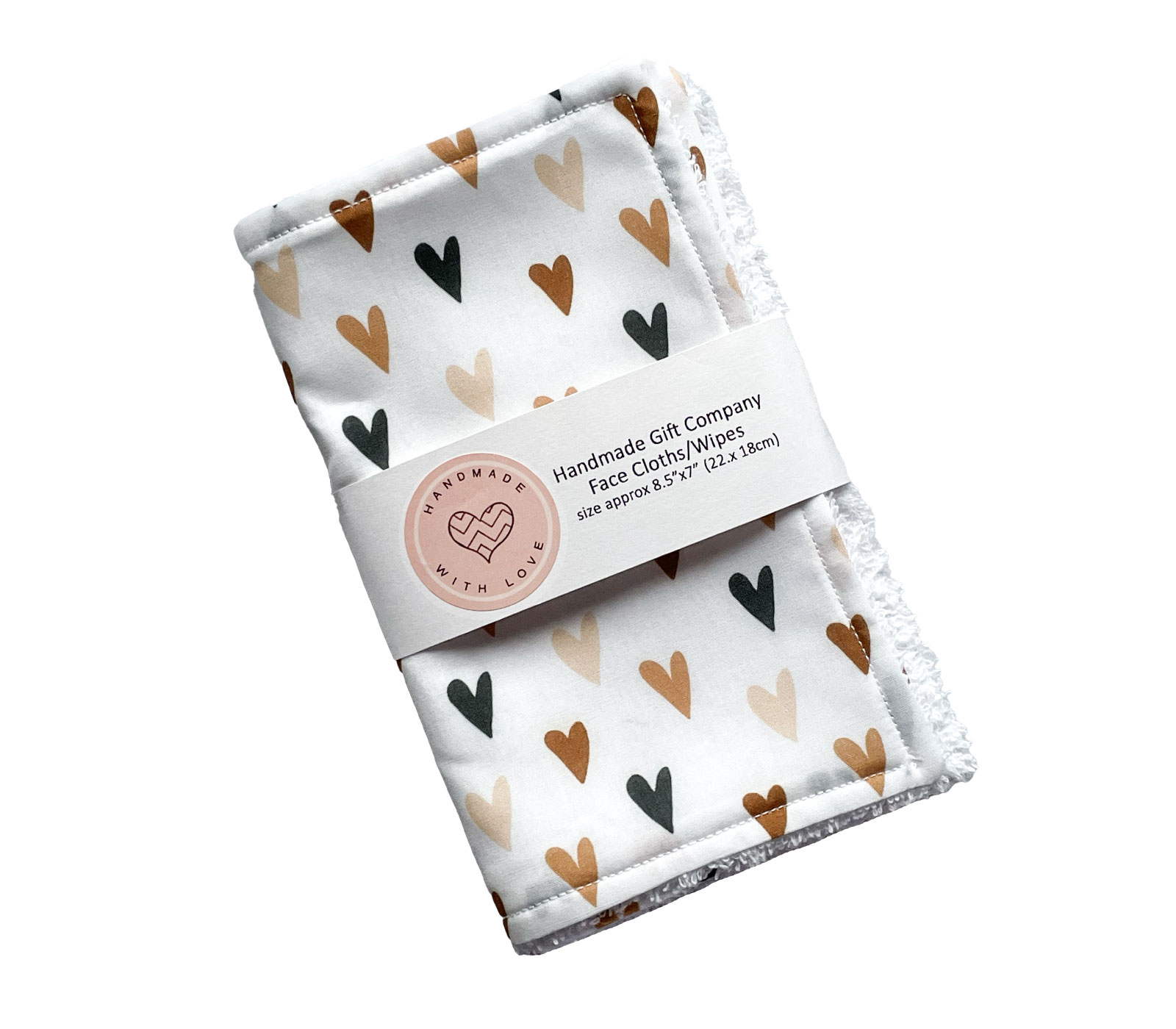 Handmade Face Cloth/Wipes Brown Hearts -2 Pack
