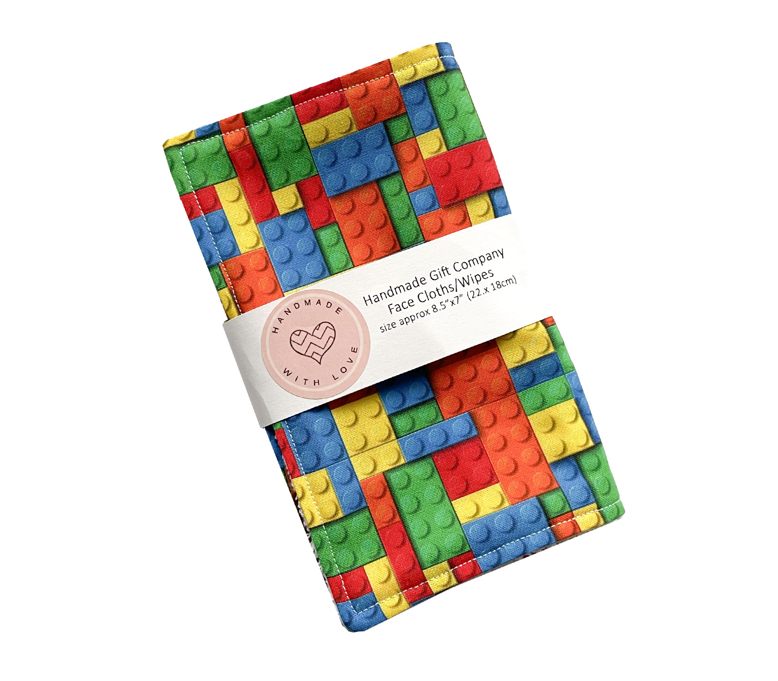 Handmade Face Cloths/Wipes Coloured Bricks -2 Pack