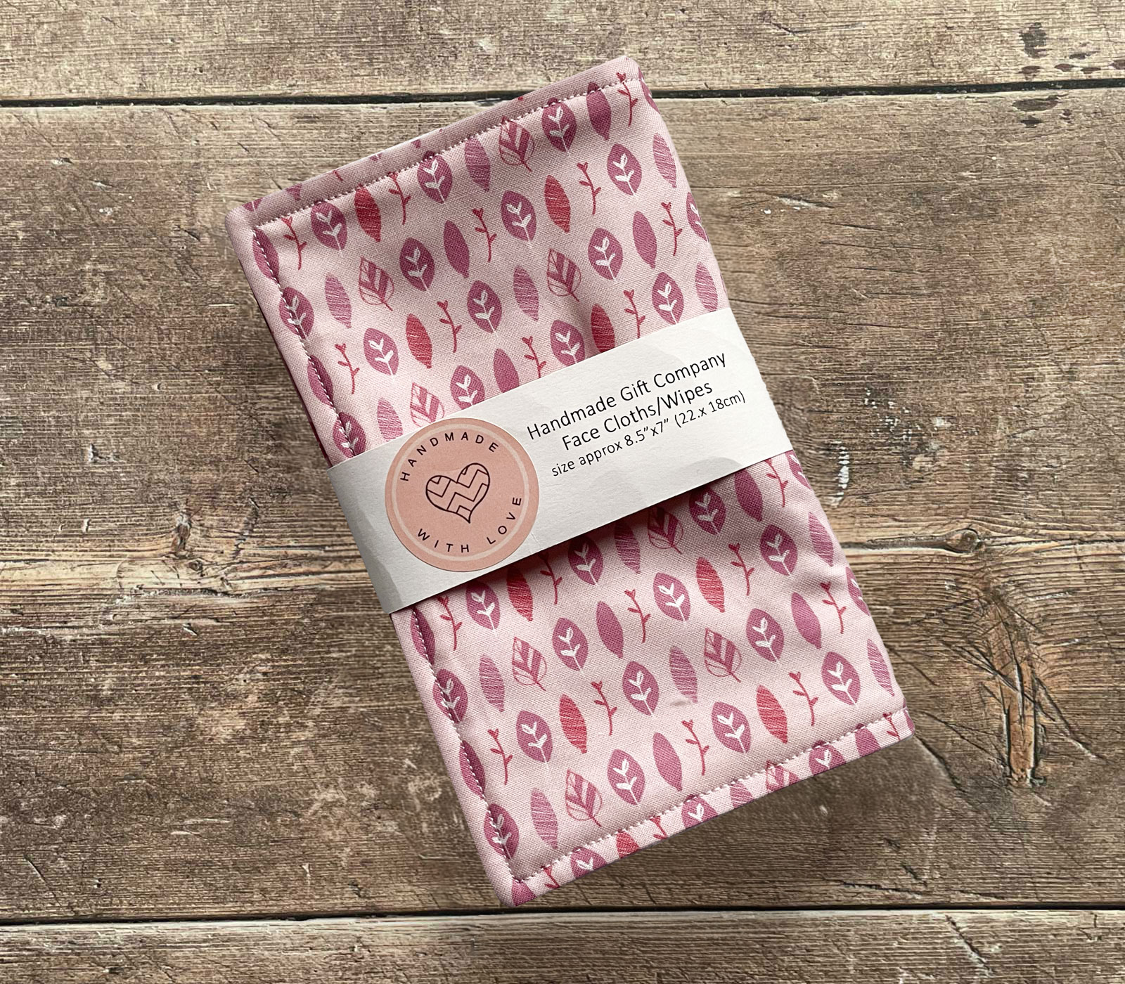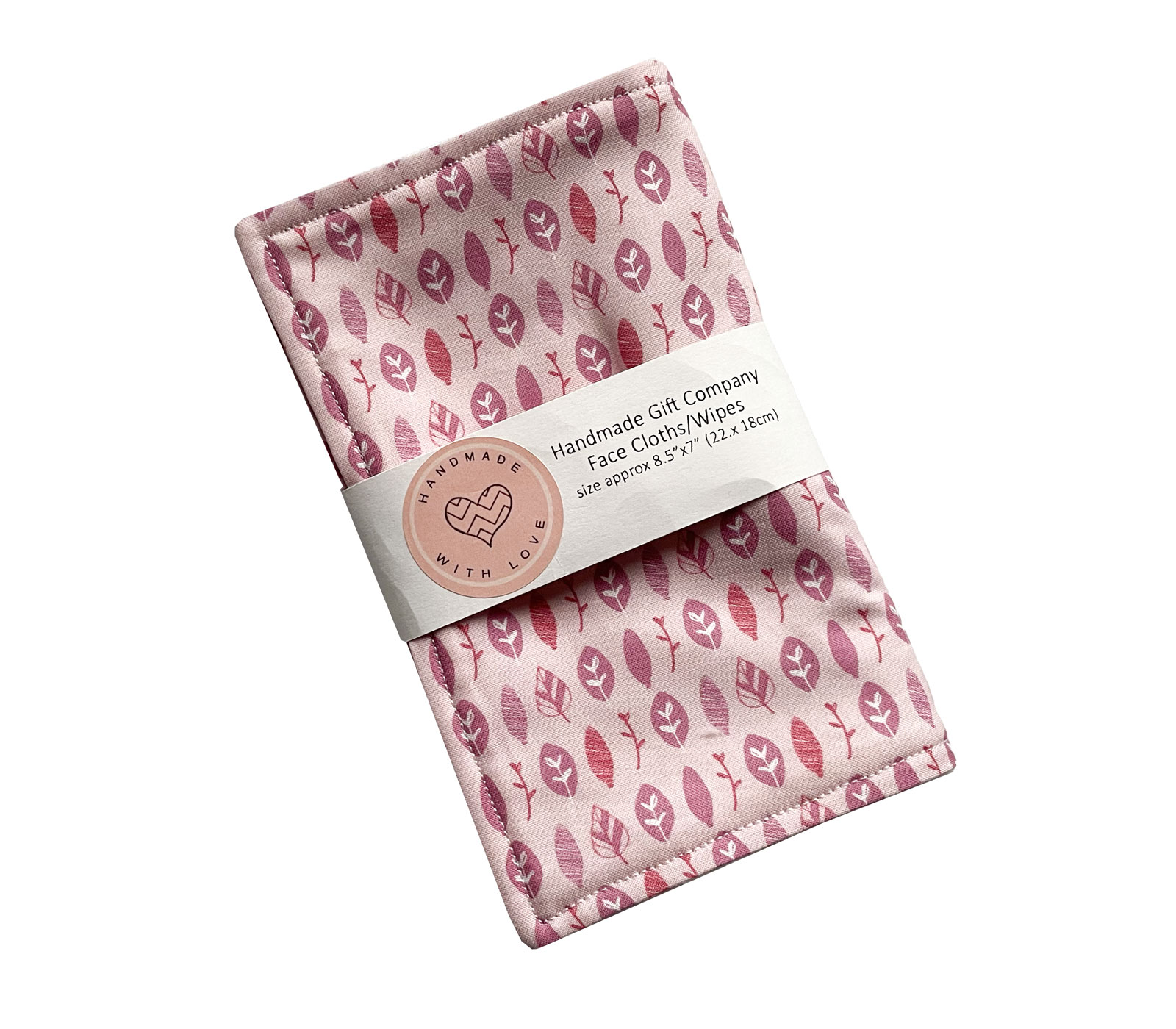 Handmade face cloth with a lovely pink leaf style in the design on a pink fabric. This item comes as a pack of 2 face cloths in the same design