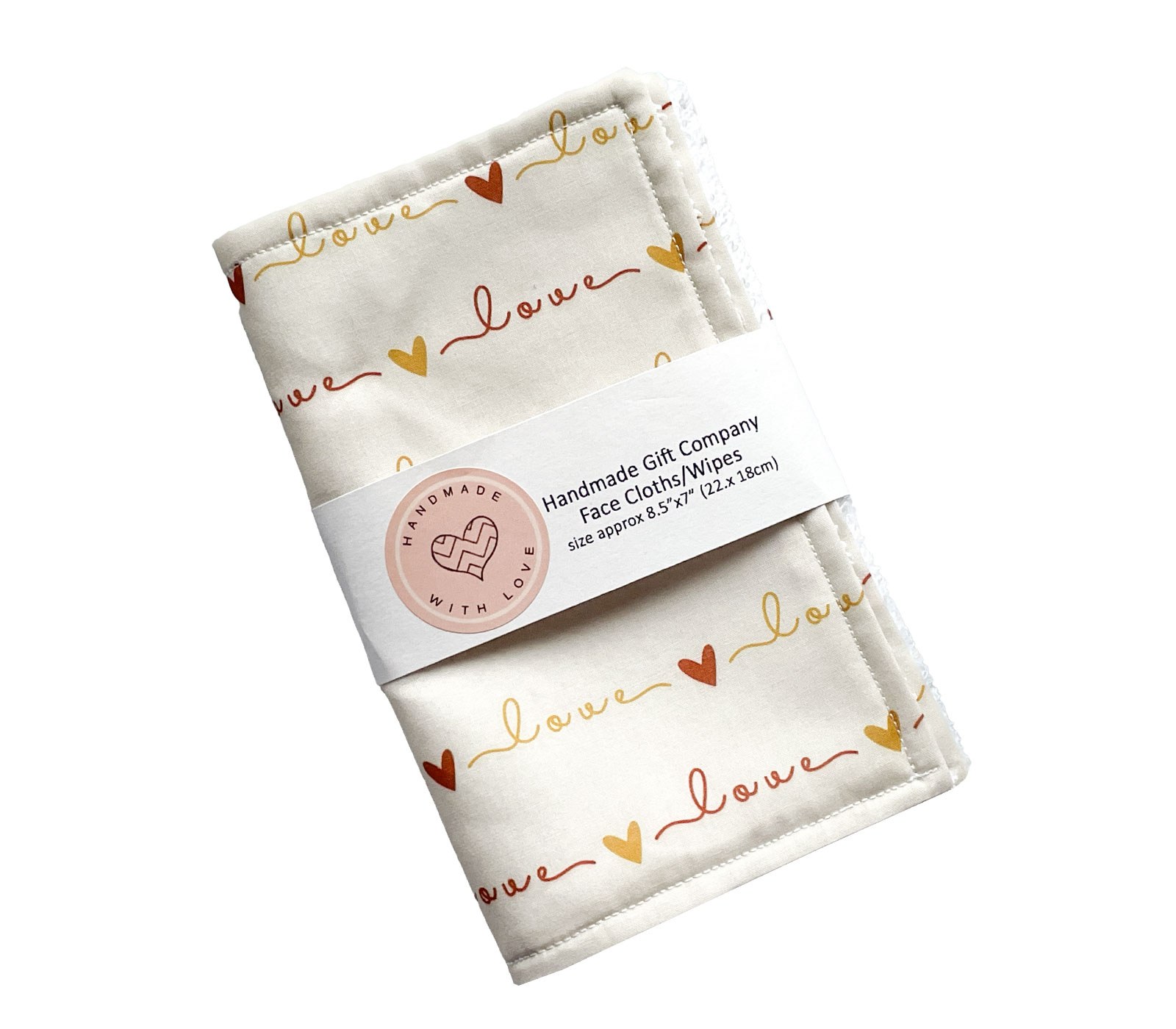 Handmade Face Cloth/Wipes Love Hearts -2 Pack