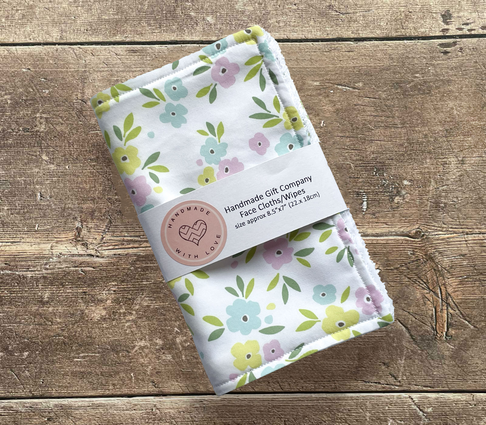 Handmade Face Cloth/Wipes Pink Flowers -2 Pack