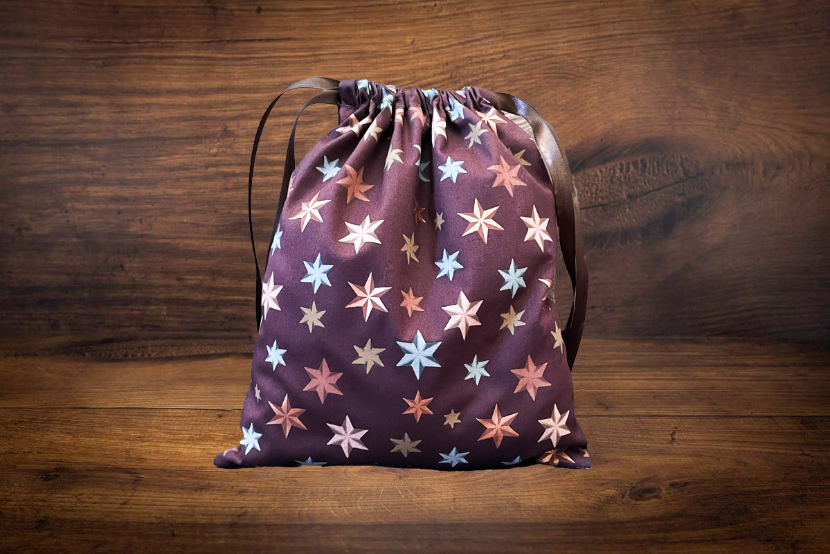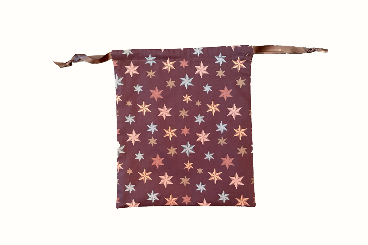Handmade Christmas Gift Bag Brown, bronze & blue stars on a brown fabric
