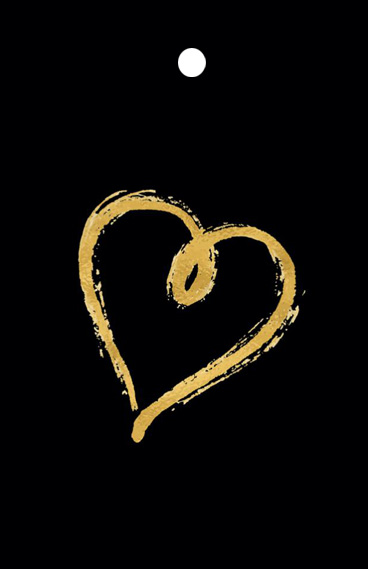 The design has lots of gold hearts on a black background.