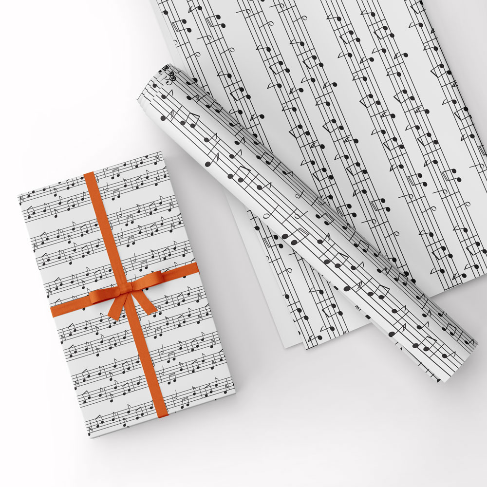 Lovely gift wrap with a musical design on a white background. This is high quality gift wrap designed by myself.