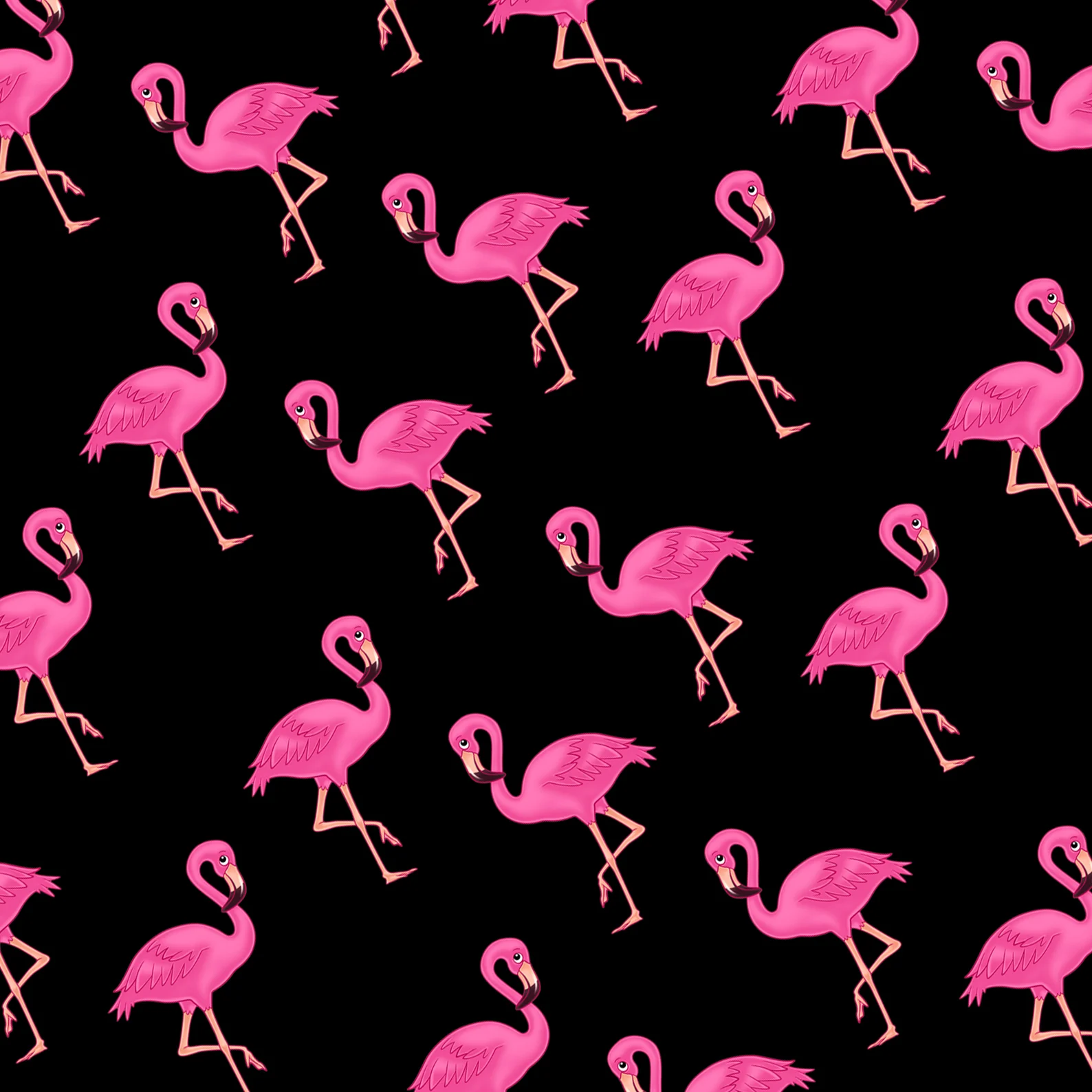 The design has lots of pretty pink flamingos on a black background.