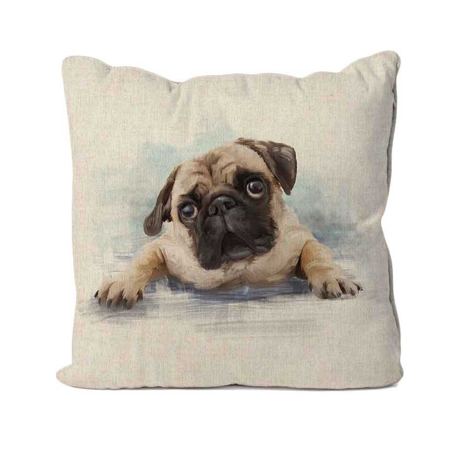 Pug Dog Design Linen Cushion